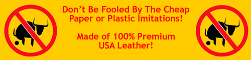 Home No Shipping No Handling No Bullshit $10 Click On the Bull Shit Guard Image Below to Purchase Made In Michigan 100% Leather Absolutely No Bullshit